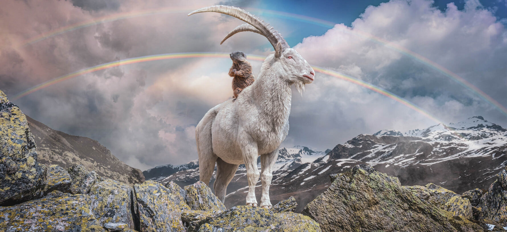 Wie macht man auf ein Bündner Casino aufmerksam? Mit einem Murmeltier, das auf einem Albino-Steinbock sitzt – unter einem Doppelregenbogen mitten in der Berglandschaft in Graubünden. Die Kampagne mit dem ungewöhnlichen Duo zeigt, dass es mehr Glück braucht diese Tiere zusammen zu sehen, als auf 777.ch von Casino Davos zu gewinnen.